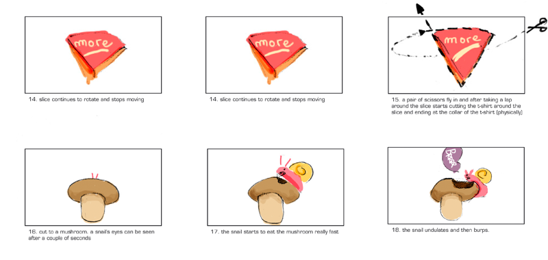 I started working on the storyboards while we were waiting for the designs to be approved. It wasn't until I used the storyboards to create a rough animatic that I realised how hard was to give characters attitude and personality while working with only six frames per second. It felt like every frame counted and had to be used efficiently.
